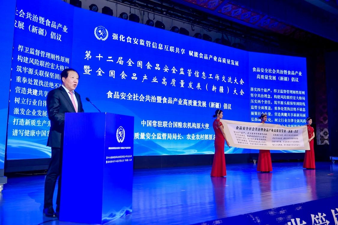 中国常驻联合国粮农机构原大使、原农业部农产品质量安全监管局局长、农业农村部原总师广德福作为代表发布“食品安全社会共治暨食品产业高质量发展(新疆)倡议”。