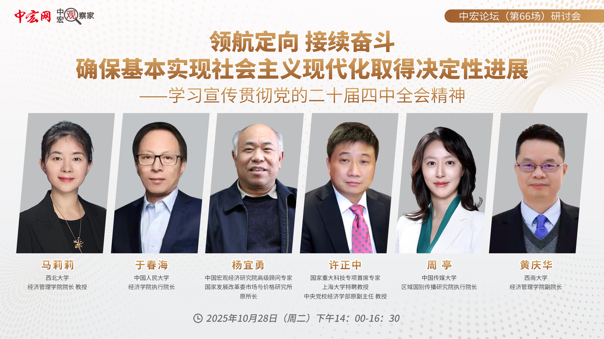 中宏网北京10月28日电 聚焦“领航定向 接续奋斗 确保基本实现社会主义现代化取得决定性进展——学习宣传贯彻党的二十届四中全会精神”主题,中宏论坛第六十六场在线研讨会于28日下午圆满召开。