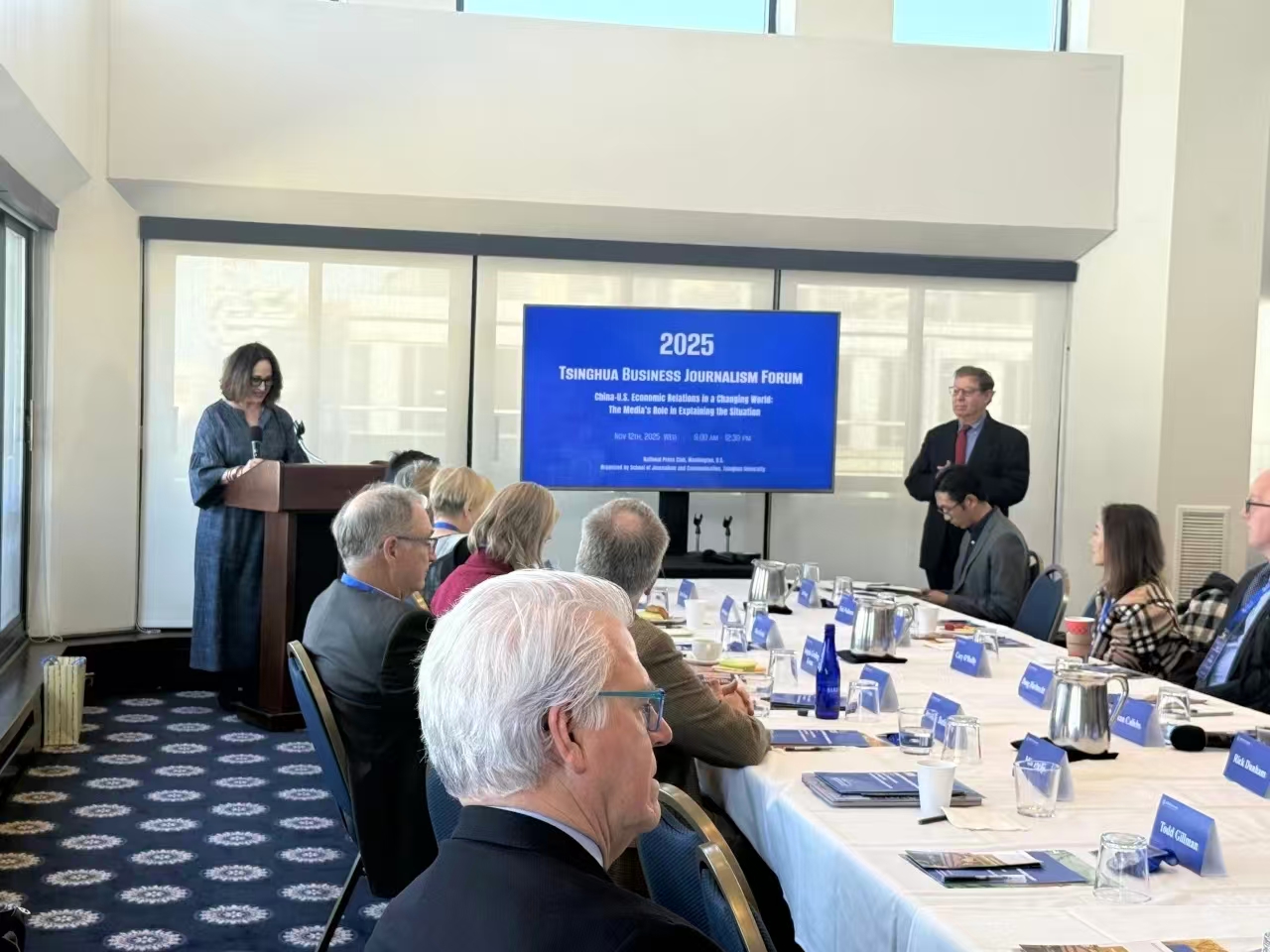 当地时间11月12日,2025年清华财经新闻论坛在美国华盛顿哥伦比亚特区国家记者俱乐部举行。论坛由清华大学新闻与传播学院主办,经济传播研究中心、全球财经新闻项目承办,清华大学全球共同发展研究院和中国经济传媒协会协办。
