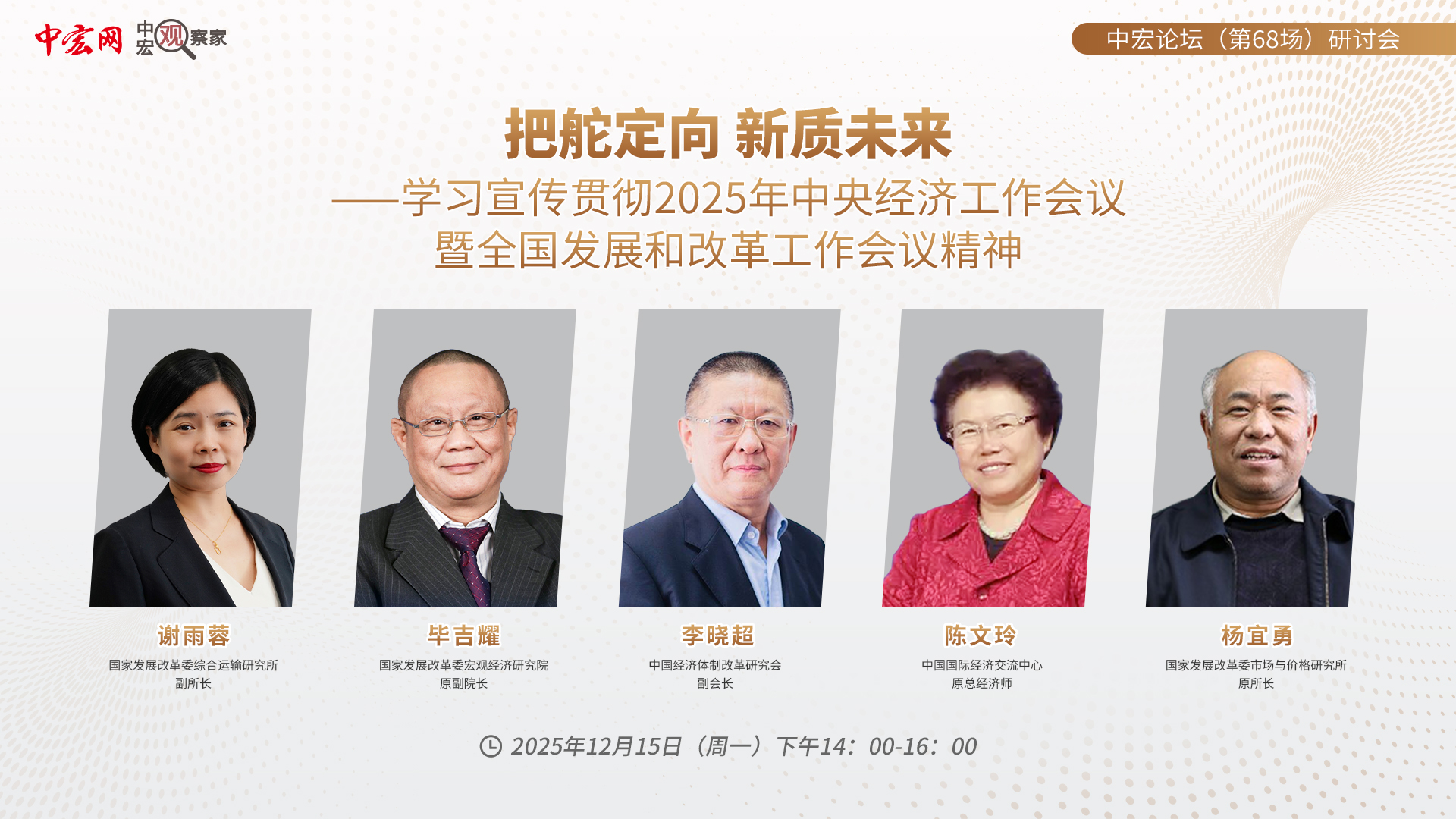 中宏网北京12月15日电 围绕“把舵定向 新质未来——学习宣传贯彻2025年中央经济工作会议暨全国发展和改革工作会议精神”主题,中宏论坛第六十八场研讨会于15日下午圆满召开。