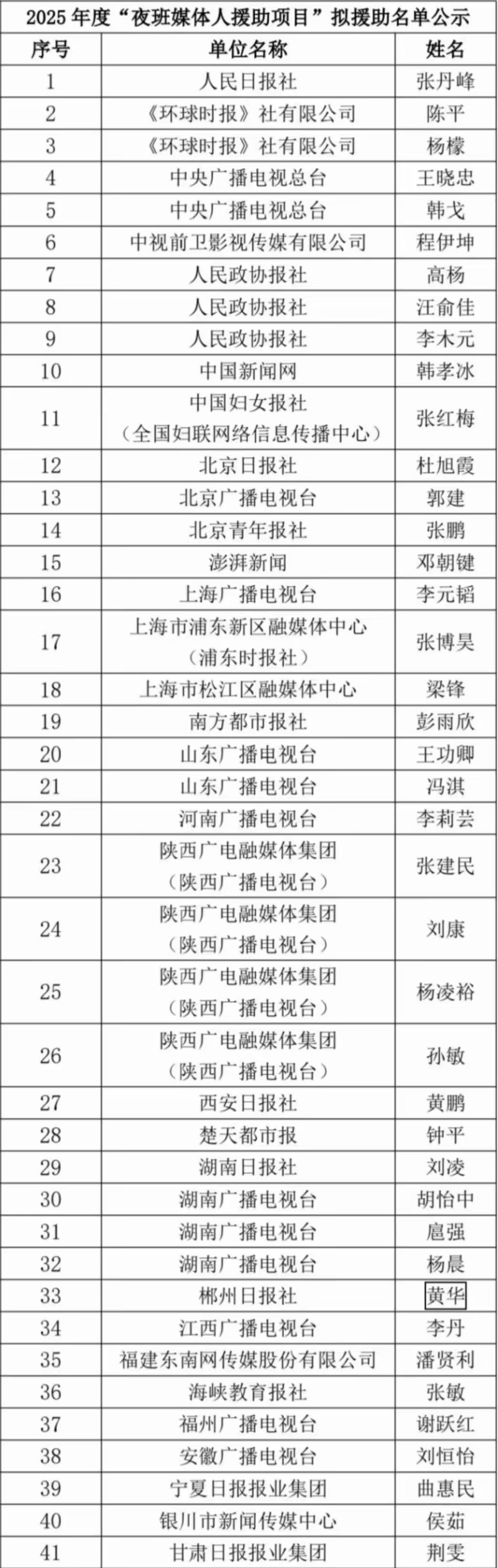 需要特别一提的是,11月5日,“夜班媒体人援助项目”了解到湖南郴州日报社编委、主任记者黄华,于10月20日突发疾病倒在办公室,紧急报请各位评委审定通过,将黄华老师加入拟援助名单。