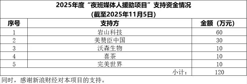 2025年度“夜班媒体人援助项目”拟援助名单公示时间为11月7日—11月17日,共计十个自然日。