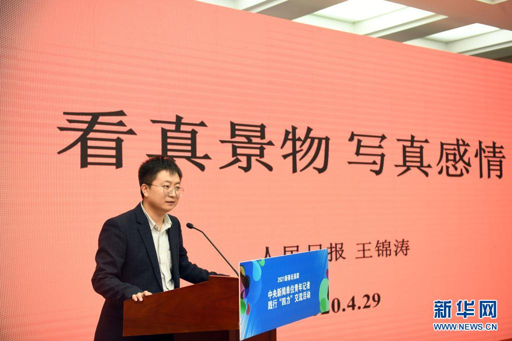 4月29日,人民日报社记者王锦涛在交流活动现场发言。新华社记者 金良快 摄