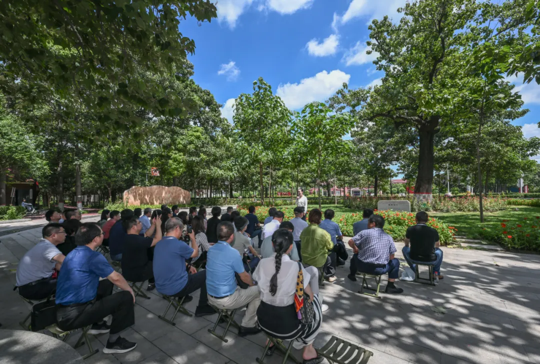 7月30日,兰考的天格外晴好,蓝天白云下,树冠茂密的焦桐在风中轻轻摇曳。学员们一边参观焦桐,一边回顾了半个多世纪之前焦裕禄同志亲手栽植这棵泡桐的初衷。